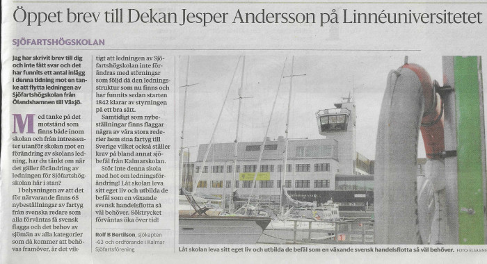 Artrikel i tidningen Kalmarposten 2019 01 30